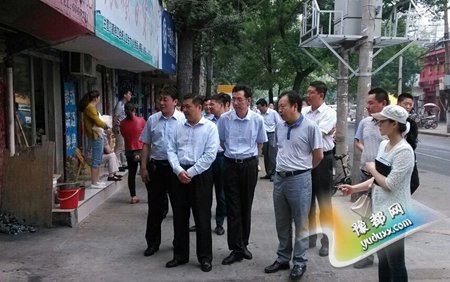 现场会前,区长田庆杰,区委常委、副区长王文峰,区“两违”办主任李彩文带领各办事处书记、主任,分管副职、城管中队长及城管、环卫等有关部门负责同志实地察看了七一路办事处对文明路市容环境整治情况,沿途与七一路办事处相关负责人以及商户进行交谈,倾听街道居民的建议和呼声,详细了解办事处环境整治过程中存在的困难和问题,并提出解决问题的措施和办法。
