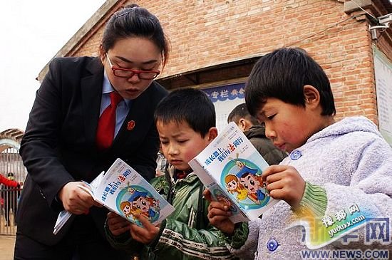 该院女法官李冰为留守儿童发放并讲解《成长路上 我们与法同行》