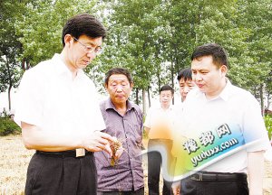 周口日报讯 6月2日,县长马明超带领张凌君、薛燕、李守运等县领导及县政府办、农业局、气象局、农机局、环保局等单位负责人深入到王店乡、新站镇、朱集乡、鲁台镇等实地检查“三夏”生产和秸秆禁烧工作。