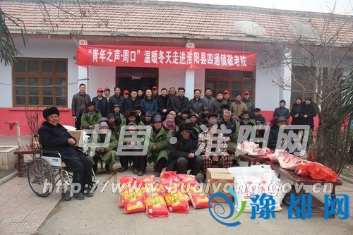 1月28日,团县委与周口市驻郑州团工委联合组织河南省祥轩书画院、河南永安医药公司20余名青年志愿者到我县四通镇敬中心敬老院开展“温暖冬天”志愿服务活动。