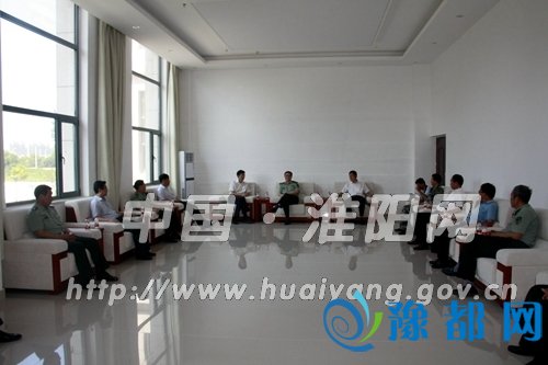 慰问中,军地双方领导进行了的亲切座谈。会上,马明超代表全县干部群众向市军分区广大武警官兵致以节日的问候,对军分区多年来对我县经济建设和社会发展所作出的重大贡献表示衷心感谢,并介绍了我县今年上半年社会经济发展取得的新突破、新成果。希望军分区领导常来淮阳走走看看,一如既往地支持淮阳的各项工作,继续为淮阳的发展出谋划策、给予更大的关心和帮助。
