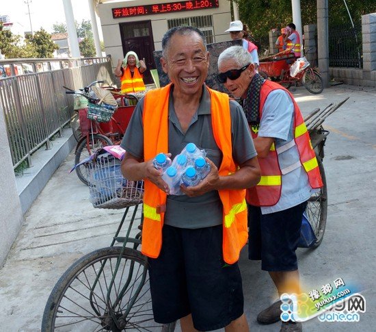 “谢谢你们这么热的天,还想着俺,我都不知道该说点啥好了。”今年59岁的环卫工人老宋高兴地说。