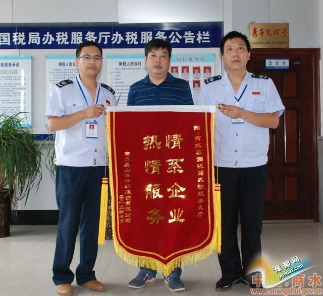 7月23日,商水县山峰纺织服饰有限公司将一面写有“情系企业,热情服务”的锦旗送到商水县国税局办税服务厅,感谢办税厅工作人员为其提供的优质高效服务。据悉,7月22日该企业办税员到办税服务厅办理业务时,因增值税防伪税控盘出现错误,无法正常领用增值税专用发票。了解到这种情况,该局办税厅工作人员协同航天金穗公司技术人员利用中午休息时间为其解决了问题,并办理了增值税专用发票领用业务,这种热心负责的工作态度得到了纳税人的高度赞扬。
