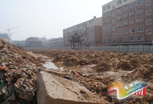 然而,来到在现场,媒体只看见被圈起来的地块大部分被土石和垃圾覆盖,只有靠近支农路的地方有机器在整理地基。
