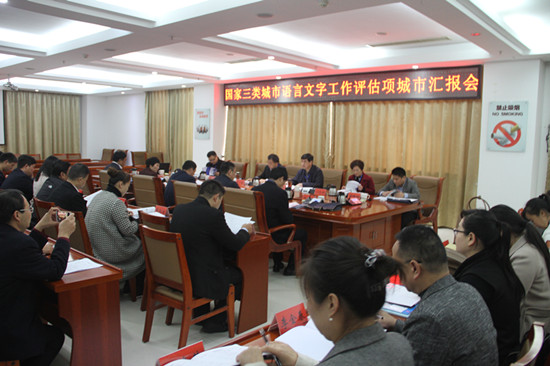 张爱玲代表市委市政府向评估组汇报了我市语言文字工作开展情况。
